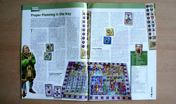 Nemusíme se s tím jako recenzenti neziskového webu ztotožňovat, ale časopis si na sebe někde vydělávat musí, to je zřejmé. Ovšem Spielbox se snaží tuto situaci kompenzovat tím, že se tématu nějak opravdu věnuje. Proto musí být zakázka jasná ještě dlouho před vydáním samotného časopisu. U tohoto čtvrtého čísla pro rok 2011 to bylo jinak, protože zakázku dánské firmy odmítli kvůli požadavku na přislíbení článku o jejich hře. Matthias Hardel se dále zabývá čestností recenzentů, včetně své, v níž recenzoval Pantheon, kterému dal podobně jako my vysoké hodnocení – viz naše recenze Pantheonu.